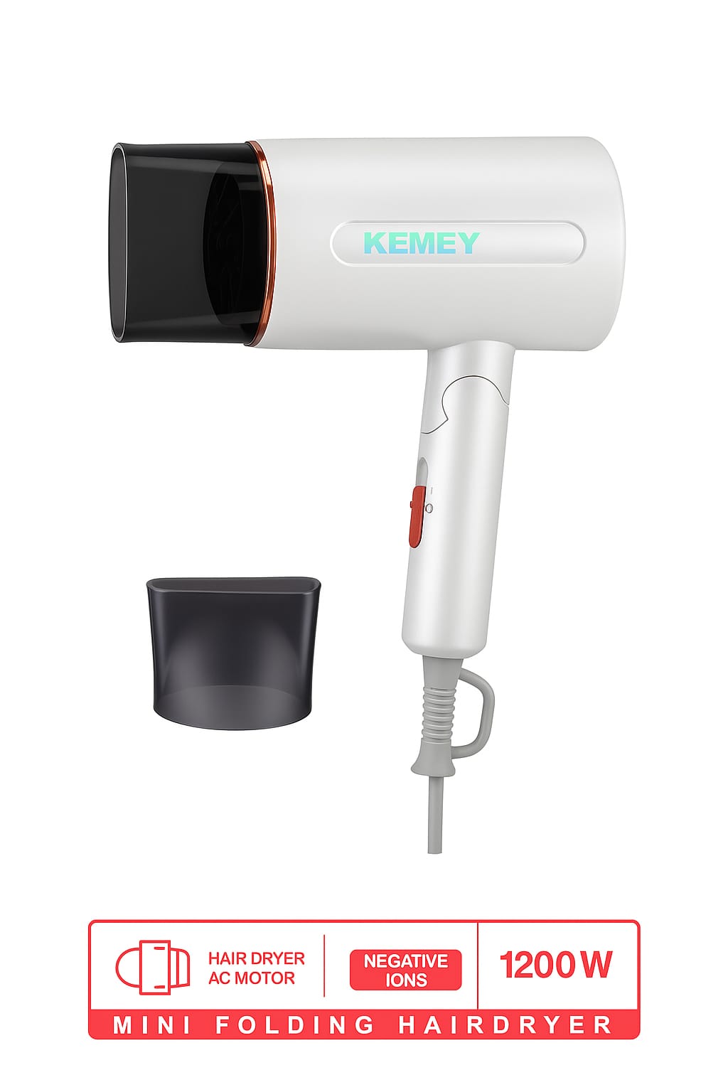 Το Kemei KM-6873 είναι ένα μίνι σεσουάρ μαλλιών με υψηλή απόδοση και εργονομικό σχεδιασμό. Διαθέτει ισχυρό μοτέρ 2200W που προσφέρει σταθερή ροή αέρα για γρήγορο και ομοιόμορφο στέγνωμα.