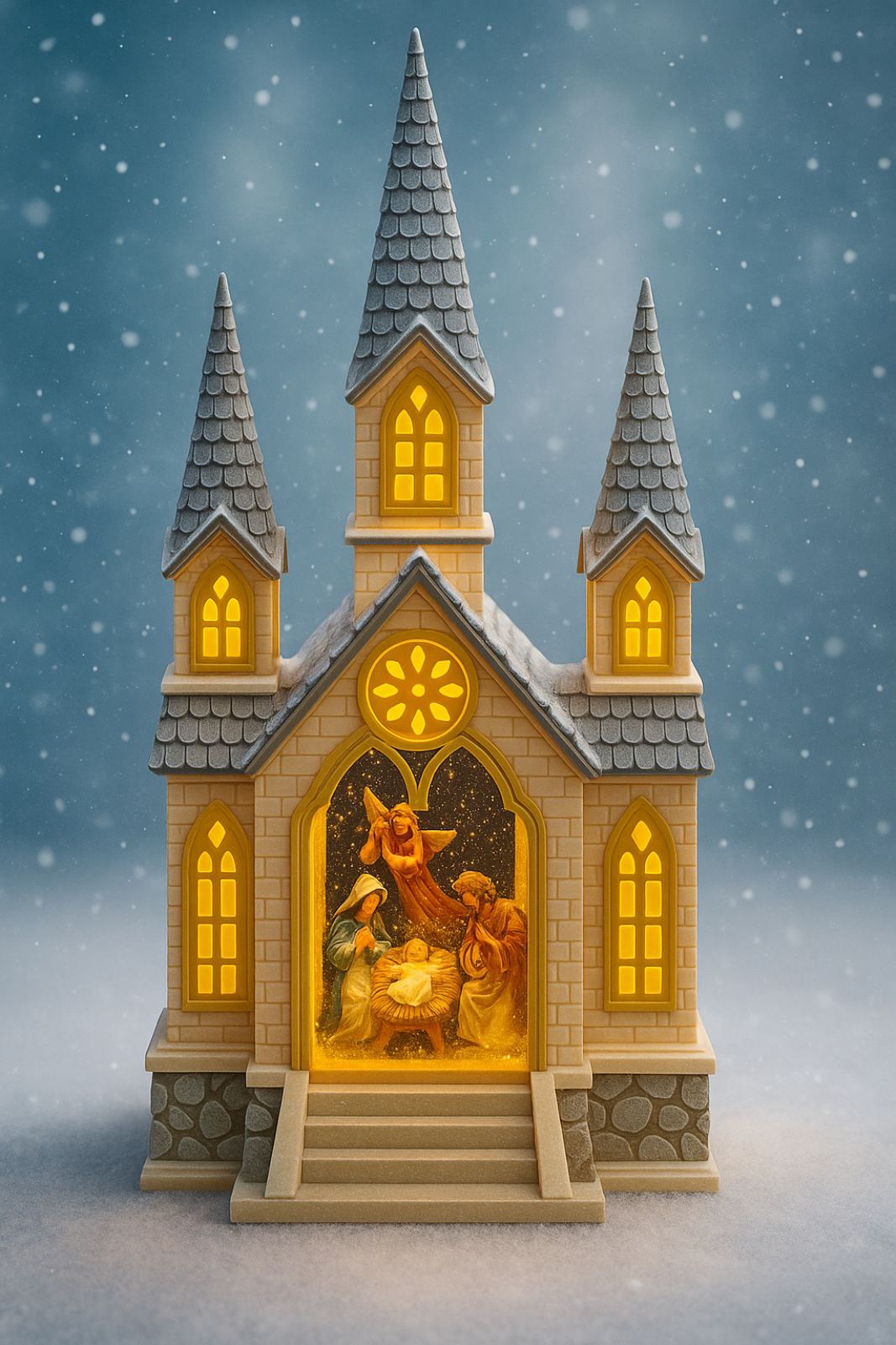 Φάτνη από Led φωτισμό σαν εκκλησία, χρειάζεται μπαταρίες