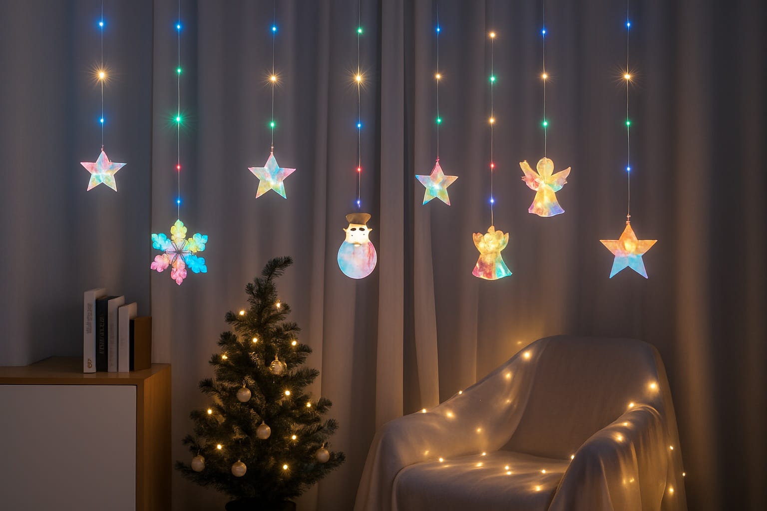 Μεταμορφώστε τον χώρο σας σε ένα μαγικό χριστουγεννιάτικο σκηνικό με τα LED Κουρτινόφωτα Χριστουγέννων. Διακοσμημένα με αστέρια, νιφάδες, αγγέλους και χιονάνθρωπους, αυτά τα πολύχρωμα φωτάκια δημιουργούν μια ζεστή και χαρούμενη ατμόσφαιρα που αποπνέει τη μαγεία των γιορτών. Ιδανικά για παράθυρα, σαλόνια, υπνοδωμάτια ή βιτρίνες καταστημάτων.