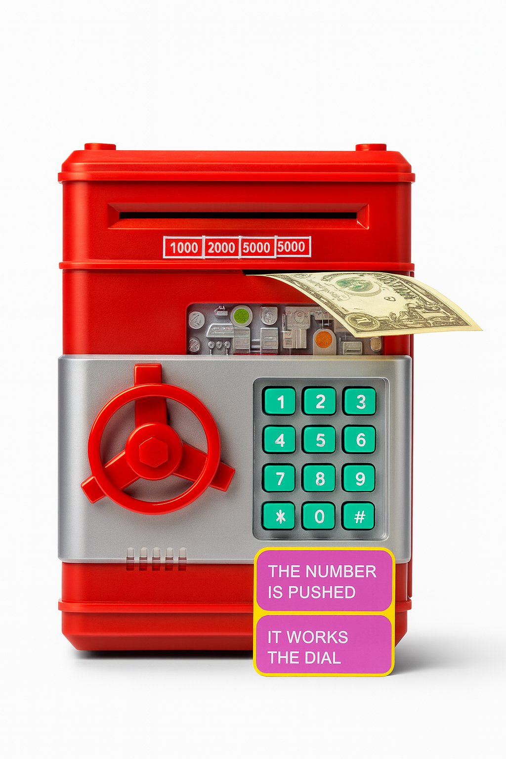 Διδάξτε στα παιδιά την αξία της αποταμίευσης με το Number Bank, έναν διασκεδαστικό και διαδραστικό ηλεκτρονικό κουμπαρά σε σχήμα μικρού χρηματοκιβωτίου. Ιδανικός για παιδιά αλλά και ενήλικες, ο κουμπαράς αυτός τραβάει αυτόματα τα χαρτονομίσματα και αποθηκεύει με ασφάλεια τα κέρματα.