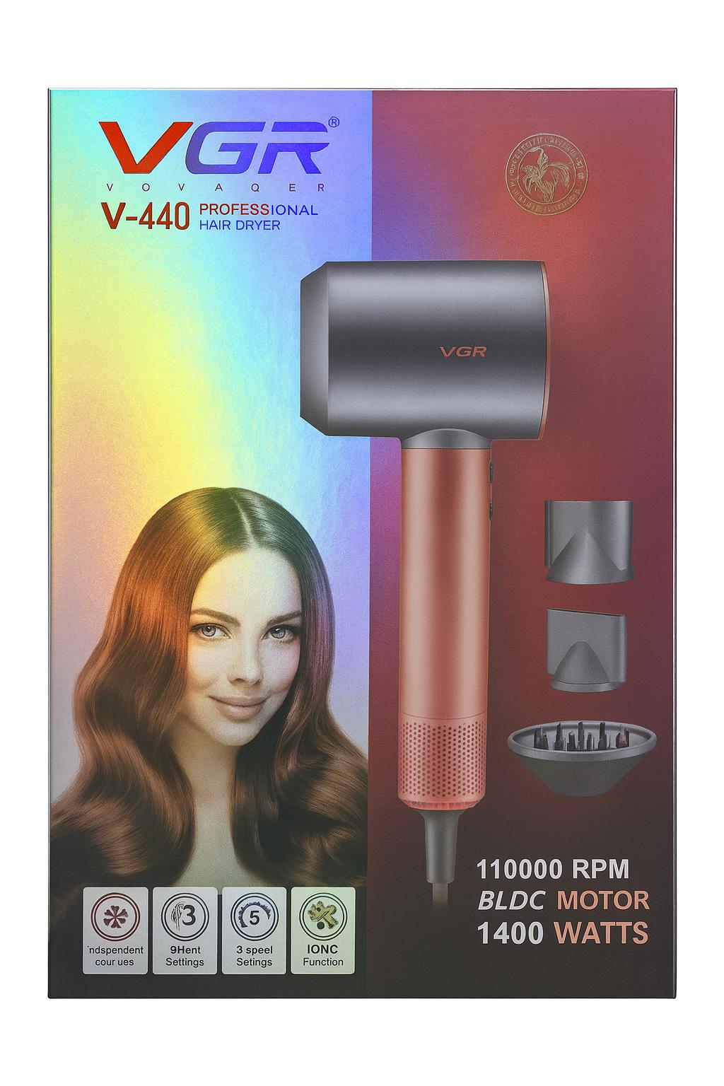 The VGR V-440 is an advanced professional hair dryer, designed for powerful performance and low noise. The 1400W BLDC motor reaches 110,000 RPM, offering powerful airflow for very fast drying.