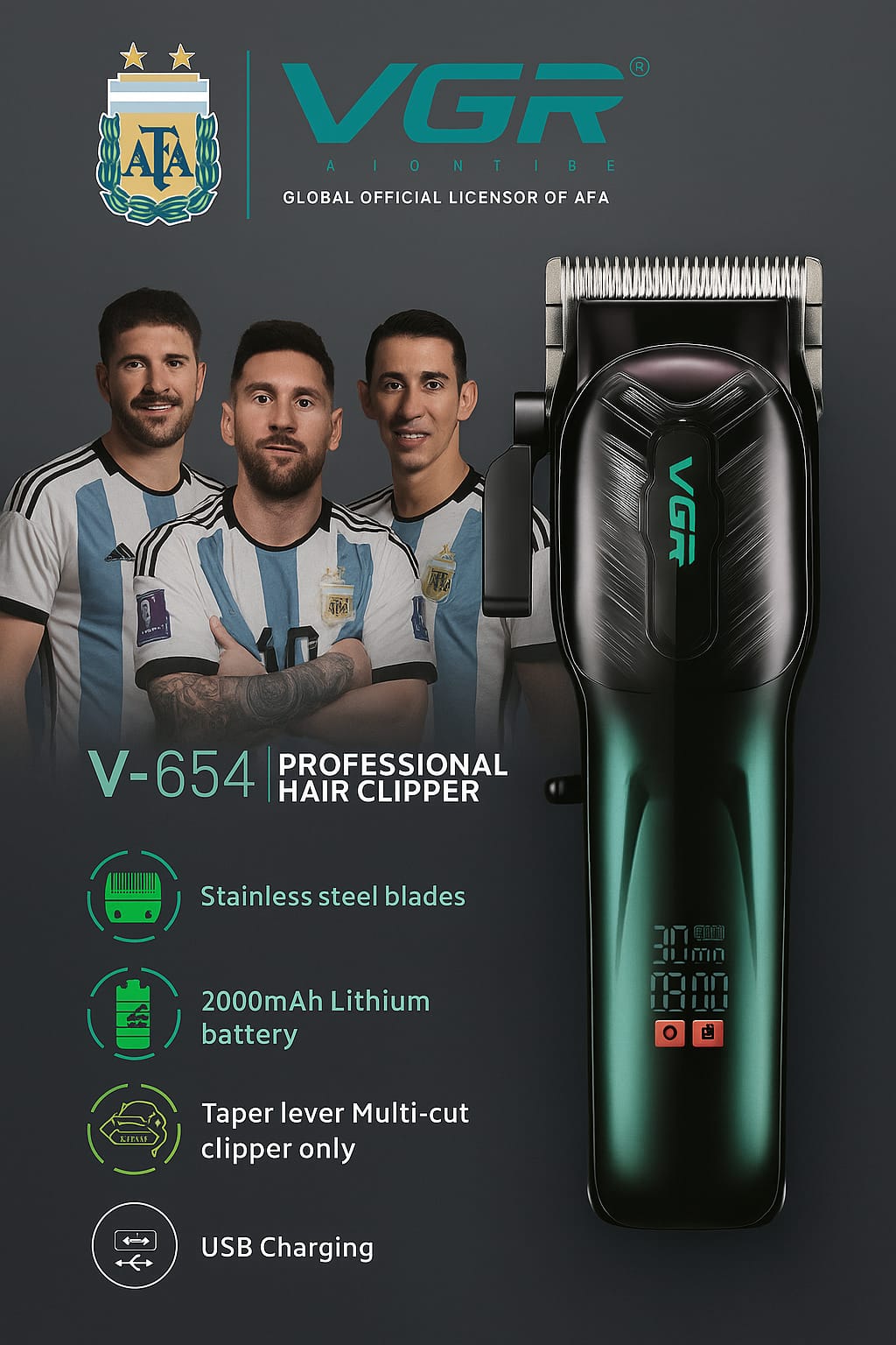 Ιδανική για επαγγελματίες κουρείς αλλά και για χρήση στο σπίτι, η V-654 είναι επίσημα αδειοδοτημένο προϊόν της AFA (Αργεντίνικη Ποδοσφαιρική Ομοσπονδία) και αντιπροσωπεύει την ακρίβεια, τη δύναμη και το στυλ.