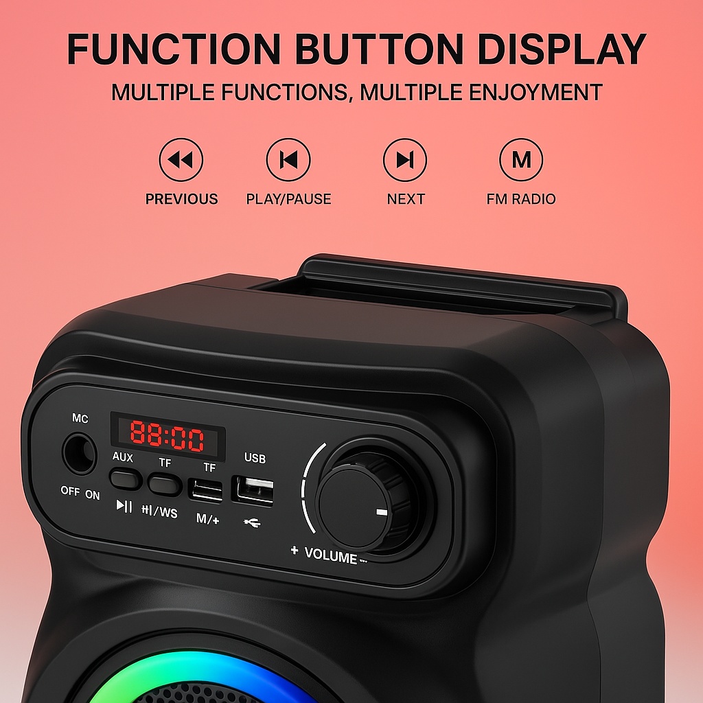 📻 FM Radio, AUX, USB, TF Card & MIC Input – Multiple connection ways.